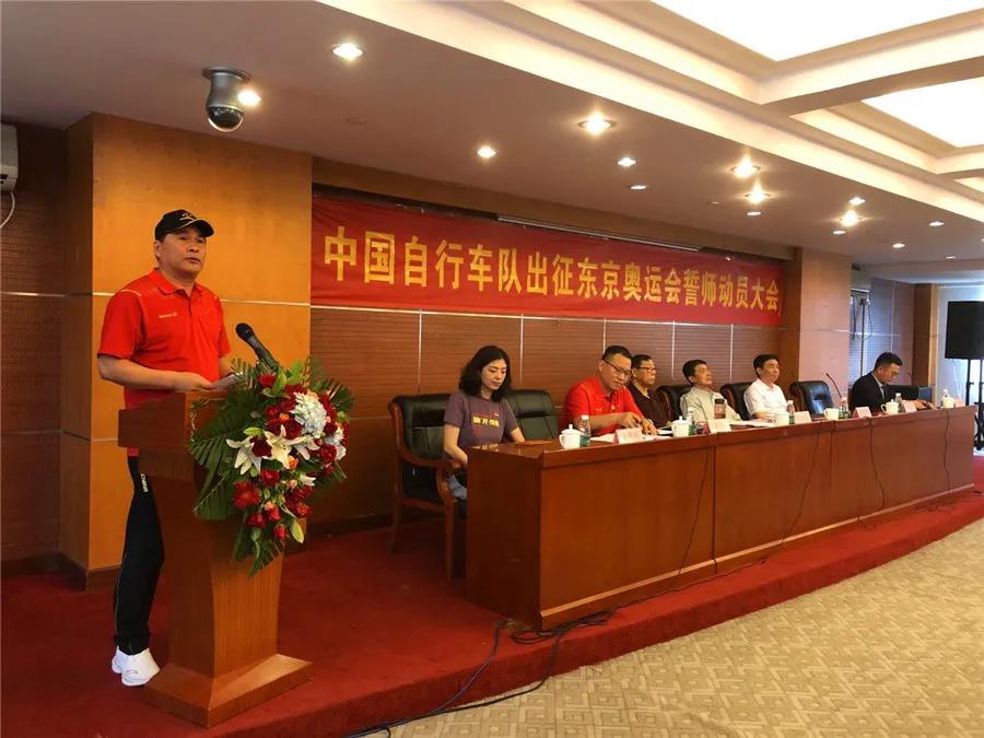 近日,东京奥运会中国体育代表团名单正式公布,代表团总人数为777人,其中运动员431人,教练员、领队、科医人员等运动队工作人员307人,团部工作人员39人。本届东京奥运会是中国体育代表团境外参赛规模最大的一届奥运会。其中自行车项目代表团由17人组成,运动员9人、工作人员8人。7月14日,中国自行车队出征东京奥运会誓师动员大会在老山训练基地举行,金年会|jinnianhui副董事长卞青峰受邀出席并致辞。